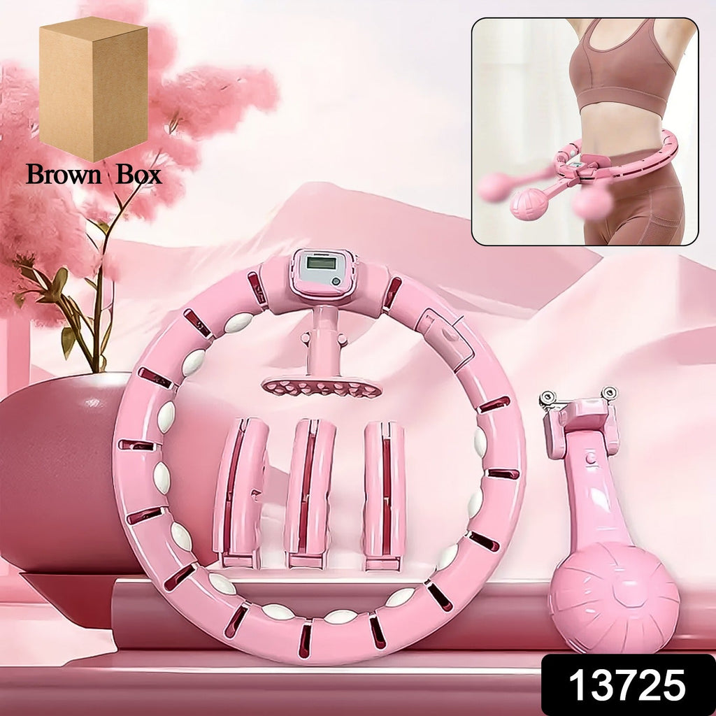 Smart Fitness Hula Hoops Non-Fall Exercise Detachable Hoola-Hoop with Ball and Intelligent Counter, Size Adjustable Freely, Suitable for Adults Weight Loss Fitness Exercise (1 Pc / With Brown Box)