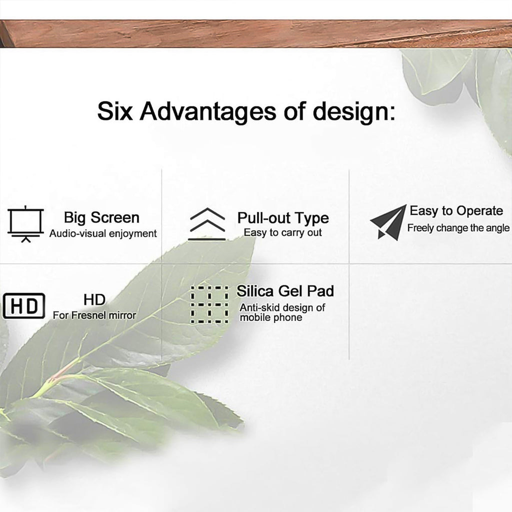 • SLIDING DESIGN & CONVENIENT AND FOLDABLE:-The latest style, pull-out magnifying glass, prevent screen scratching, use more comfortable, make the mobile phone screen bigger, pull out the round button and the screen will appear. The sliding design effectively protects the lens from damage. The screen is more dynamic, easy to use, light weight and portable, super slim when folded, suitable for indoor, camping, tourism, leisure.