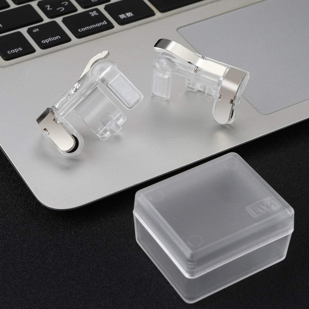 PUBG Phone Game pad Metal Trigger Fire Button Aim Key Smartphone Mobile Games L1R1 Shooter Controller-779 -premium quality, glass effect, transparent so can see screen, metal trigger Easy To Operate: With the Controller, you can simultaneously move, turn, aim and shoot by using the index fingers to touch the buttons, which can eliminate the trouble that use thumbs only to make all operations.