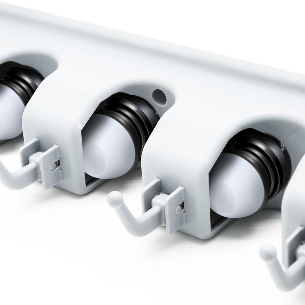 • Heavy Duty: Broom & Mop holder grip everything tightly and securely. Each rolling ball holds up to 6.5 pounds of weight(smooth rod is up to 3 pounds), the holder can hold up to about 11 tools in total. Made of high quality ABS and slots and screws. Products can grip everything tightly and securely.