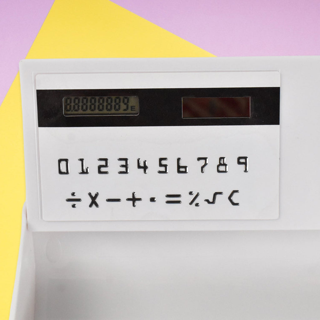 • The stationery pencil case has a built-in mirror and calculator.