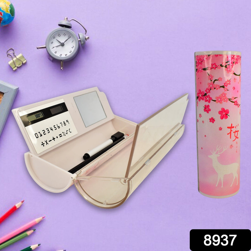 6 in 1 Compass Box, Geometry Box 2 Compartment, Pencil Box with 1 Calculator, 1 Mirror, 2 in 1 Marker Pen With Eraser for Boys Art Plastic Pencil Box for Girls and Boys (1 Set)