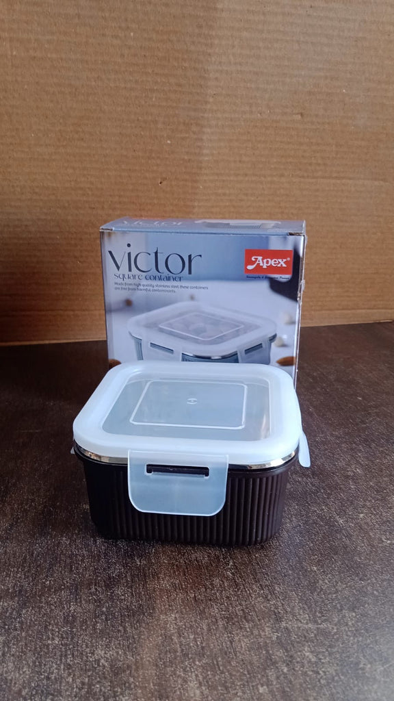 Apex Victor Square Food Storage Container – Airtight Leak-Proof Stainless Steel Inner with BPA-Free Transparent Lid and Lock Clips – Multipurpose Lunch Box and Kitchen Storage Box for Home, Office, and Travel (400 ML / 1 Pc)